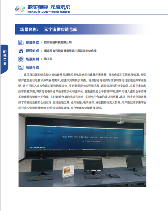 《成都元宇宙典型應(yīng)用場(chǎng)景案例集》展示了70多個(gè)典型應(yīng)用場(chǎng)景案例,體現(xiàn)了元宇宙在各個(gè)領(lǐng)域的高水平實(shí)踐示范。物通科技在元工業(yè)方面的兩個(gè)項(xiàng)目——"白酒智能釀造工業(yè)元宇宙場(chǎng)景"和"元宇宙供應(yīng)鏈倉(cāng)庫(kù)",憑借其技術(shù)創(chuàng)新和降本增效的貢獻(xiàn)得到了政府有關(guān)部門(mén)的認(rèn)可,并成功被納入案例集中。