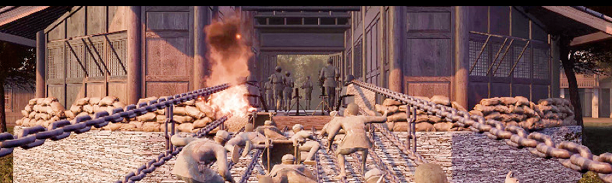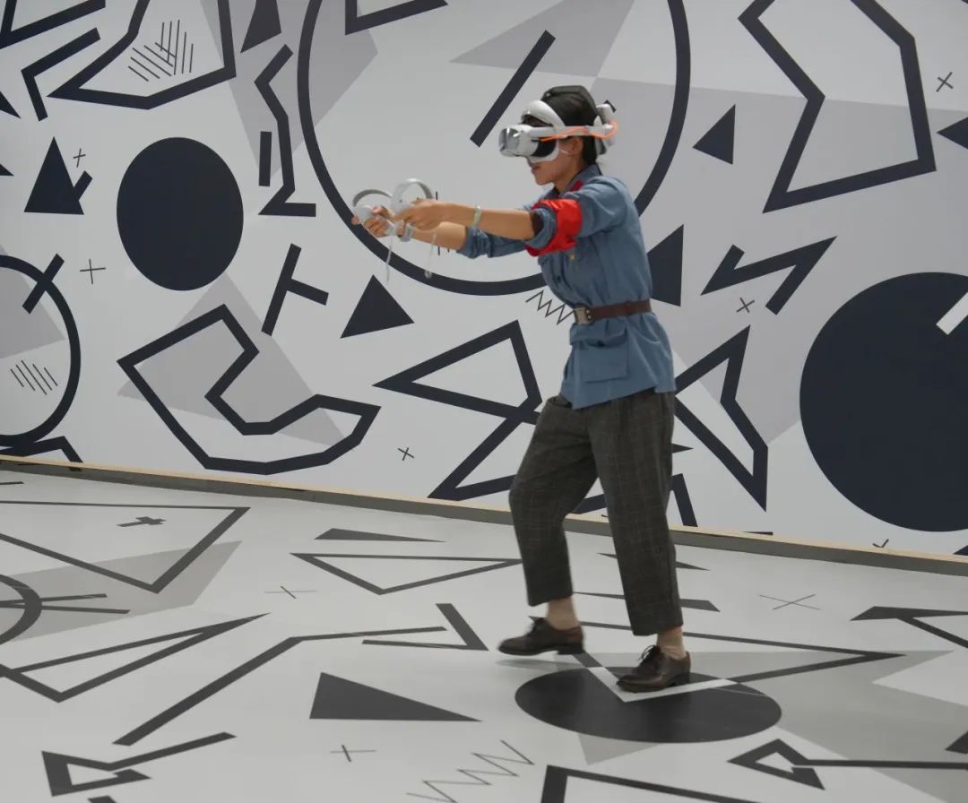 在環(huán)幕中,黨員們還提前體驗(yàn)了正在調(diào)試過程中的物通原創(chuàng)VR沉浸式探索體驗(yàn)項(xiàng)目——《飛夢(mèng)瀘定橋》。通過先進(jìn)的VR技術(shù),體驗(yàn)者可以“穿越”瀘定橋這一著名紅色地標(biāo)的前世、今生和未來,成為革命小隊(duì)中的一員,通過射擊、攀爬、穿越等自由交互操作,與革命先烈并肩作戰(zhàn),共同見證歷史的重要時(shí)刻。這種身臨其境的體驗(yàn),讓黨員們對(duì)黨的光輝歷程有了更加直觀和深刻的認(rèn)識(shí)。