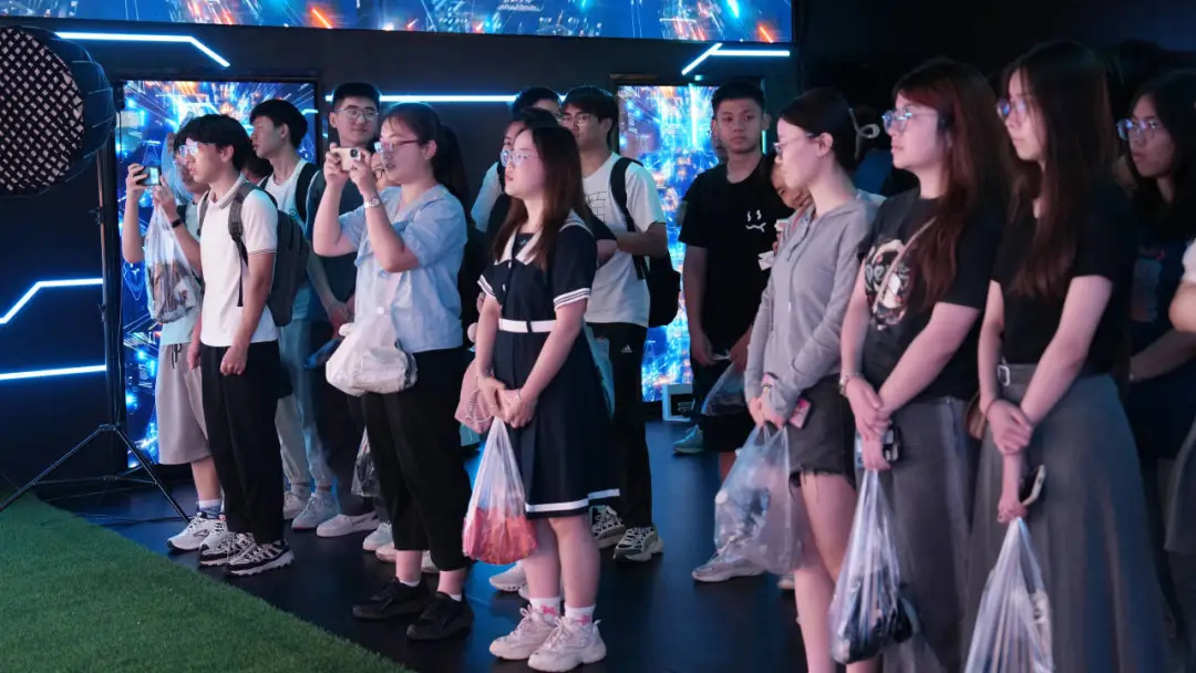 ? 師生們對(duì)實(shí)驗(yàn)工場(chǎng)里先進(jìn)的頭顯設(shè)備、豐富的虛實(shí)交互內(nèi)容興趣十足,并積極學(xué)習(xí)體驗(yàn)。尤其是物通科技自主開(kāi)發(fā)的多款VR虛擬職業(yè)培訓(xùn)系統(tǒng)、AI大語(yǔ)言模型數(shù)字人、逼真的裸眼3D內(nèi)容、VR+MR深度交互游戲、虛擬拍攝等場(chǎng)景,師生們都饒有興趣地嘗試互動(dòng)。