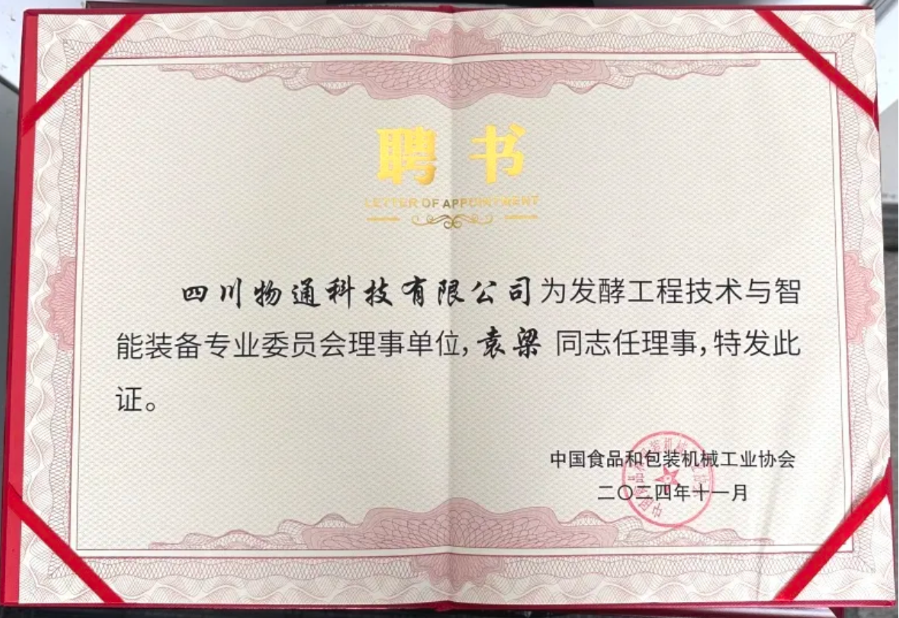 在大會期間舉行的“發(fā)酵工程技術(shù)與智能裝備專業(yè)委員會成立大會暨發(fā)酵工程技術(shù)與智能裝備論壇”上,物通科技被正式任命為該專委會的理事單位,公司總經(jīng)理袁梁先生當(dāng)選為專委會理事。這標(biāo)志著公司在行業(yè)內(nèi)的影響力和專業(yè)性得到了進(jìn)一步認(rèn)可。未來我們將更深入地參與行業(yè)標(biāo)準(zhǔn)制定和技術(shù)交流,推動整個(gè)行業(yè)的技術(shù)進(jìn)步和發(fā)展。