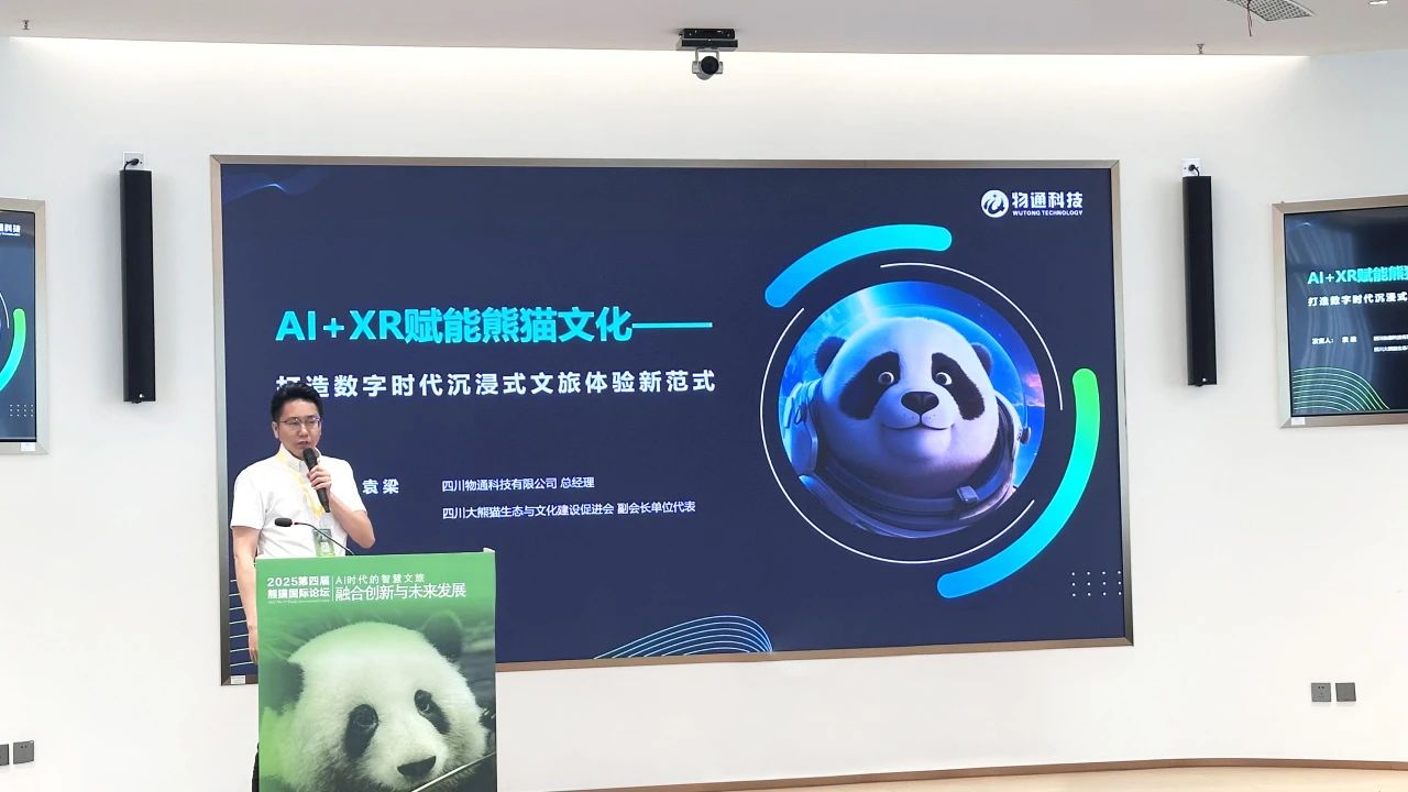 四川省大熊貓生態(tài)與文化建設(shè)促進(jìn)會副會長單位——四川物通科技有限公司(以下簡稱“物通科技”)受邀參會,總經(jīng)理袁梁代表公司發(fā)表題為“AI+XR賦能熊貓文化——打造數(shù)字時代沉浸式文旅體驗(yàn)新范式”的主題演講,重磅發(fā)布線上線下融合的“大熊貓?jiān)钪嫔鷳B(tài)體驗(yàn)空間”。