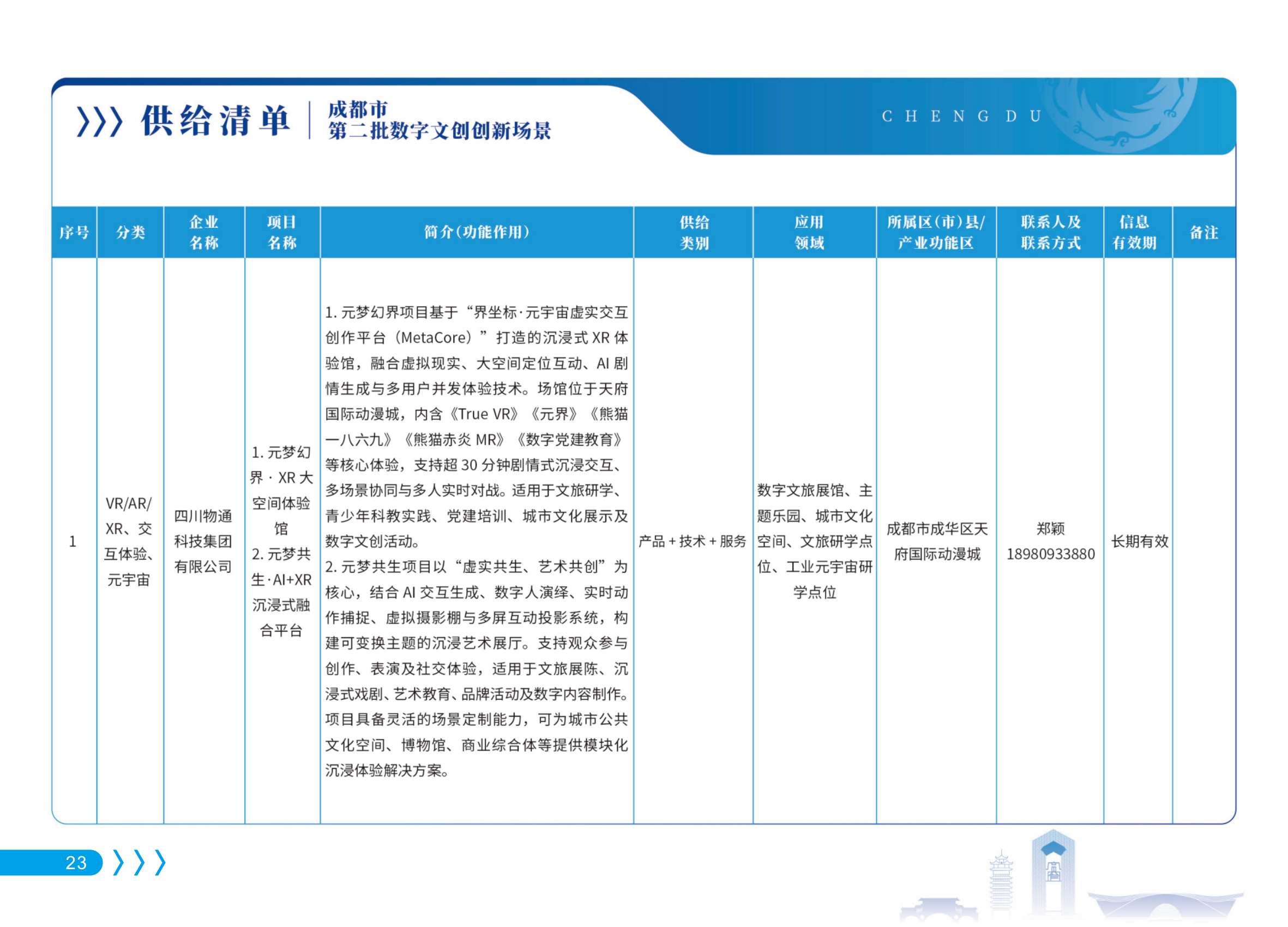 會(huì)上,公司核心產(chǎn)品“元夢(mèng)共生·AI+XR沉浸式融合平臺(tái)”及“元夢(mèng)幻界·XR大空間體驗(yàn)館”成功入選《成都市數(shù)字文創(chuàng)創(chuàng)新場(chǎng)景清單》,標(biāo)志著公司技術(shù)能力與解決方案獲得市級(jí)認(rèn)可。