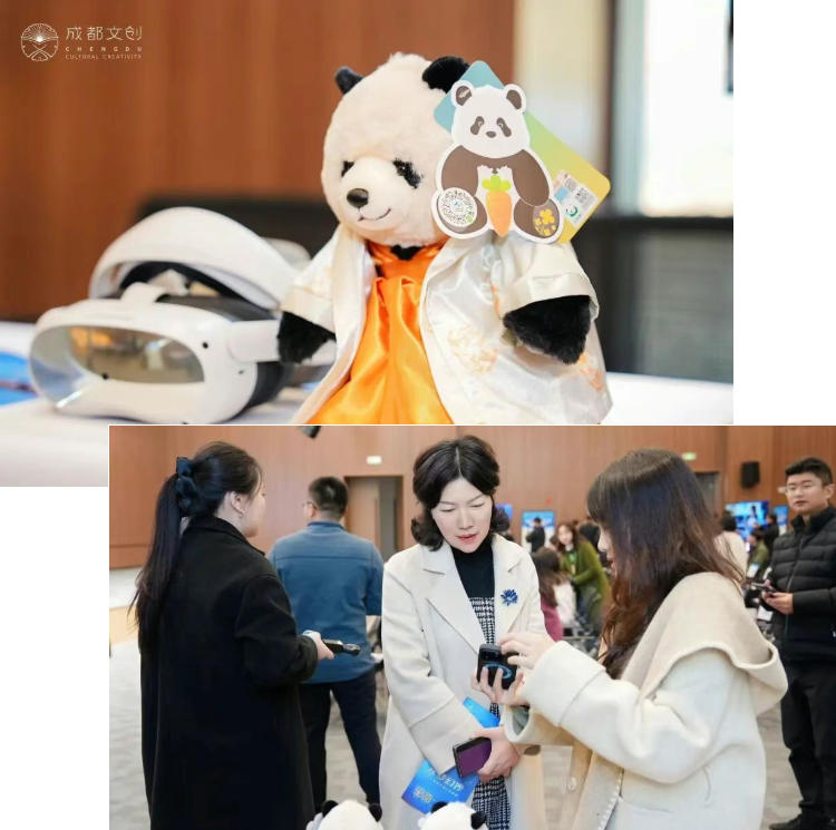 在活動(dòng)現(xiàn)場(chǎng)的展示與交流區(qū),物通科技系統(tǒng)呈現(xiàn)了以熊貓文化IP為核心構(gòu)建的“沉浸體驗(yàn)+數(shù)字文創(chuàng)”產(chǎn)品矩陣,展現(xiàn)了文化科技融合的深度與商業(yè)寬度。
