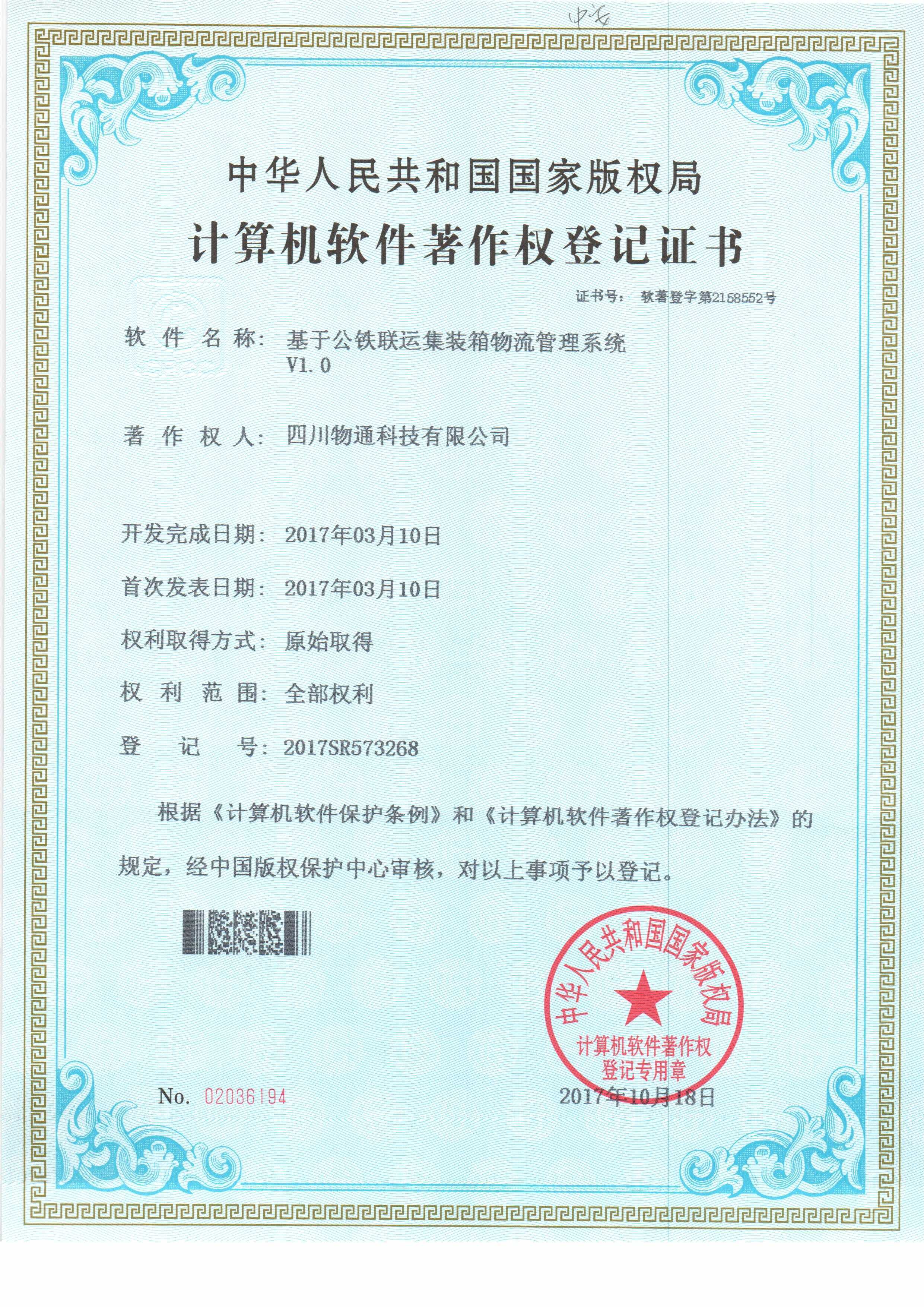 四川物通科技又入手兩項(xiàng)計(jì)算機(jī)軟件著作權(quán)登記證書