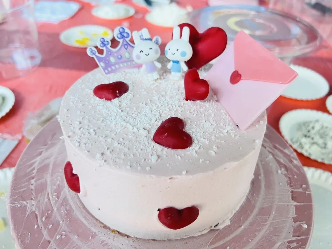 經(jīng)過一小時的制作,一個個可愛兼具雅致的蛋糕就“新鮮出爐”啦。大家對彼此的作品給予欣賞與夸贊,現(xiàn)場匯成一片歡聲笑語。